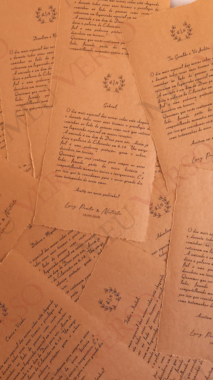 Carta com texto impresso que acompanha o Kit. Temos várias sugestões de textos que vamos te enviar após a confirmação do pedido.